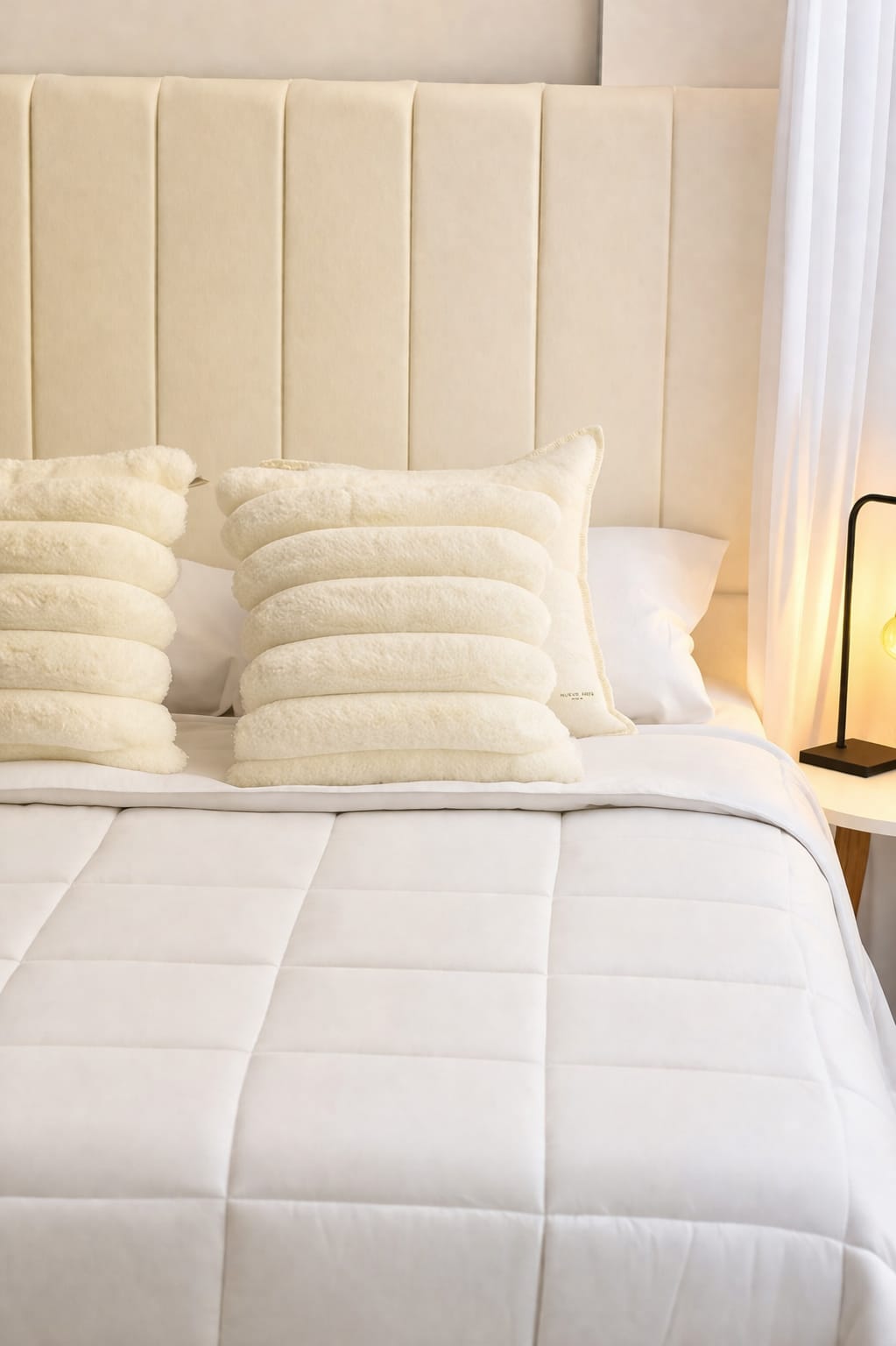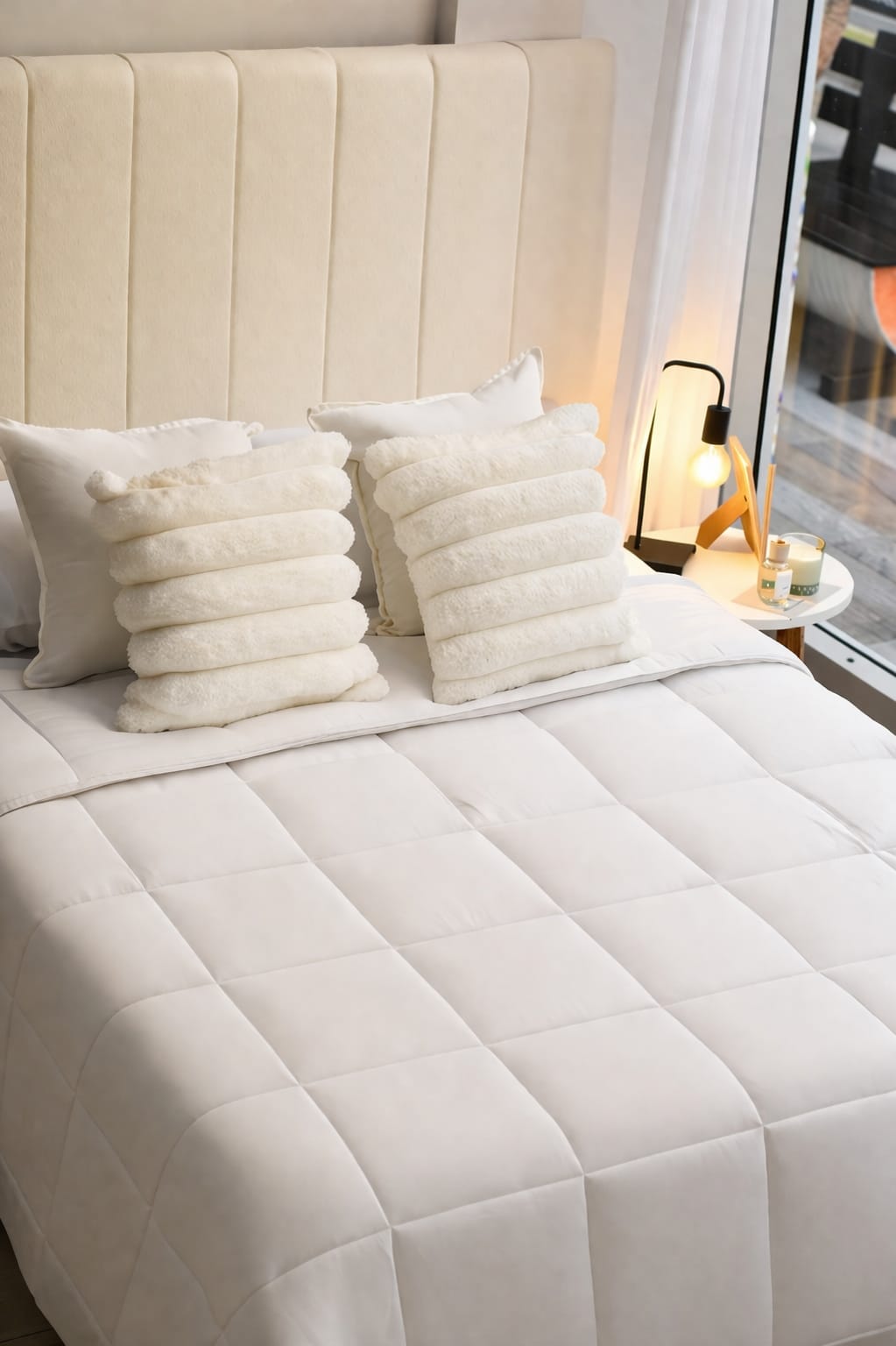 Acolchado reversible en tono blanco, elegante y vers谩til para renovar tu dormitorio con estilo.