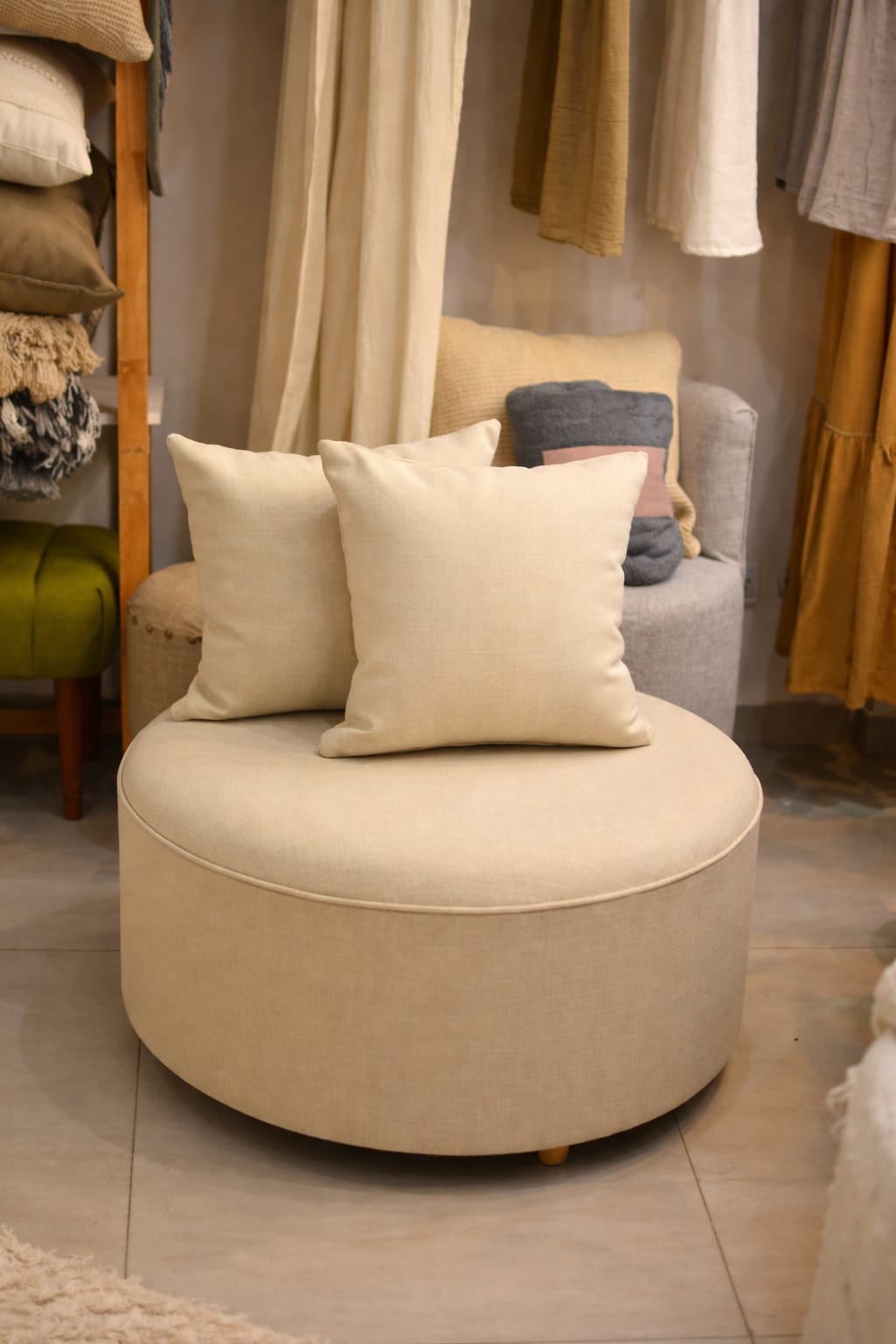 Su forma redonda y altura de 40 cm lo hacen ideal para descansar y relajarse.