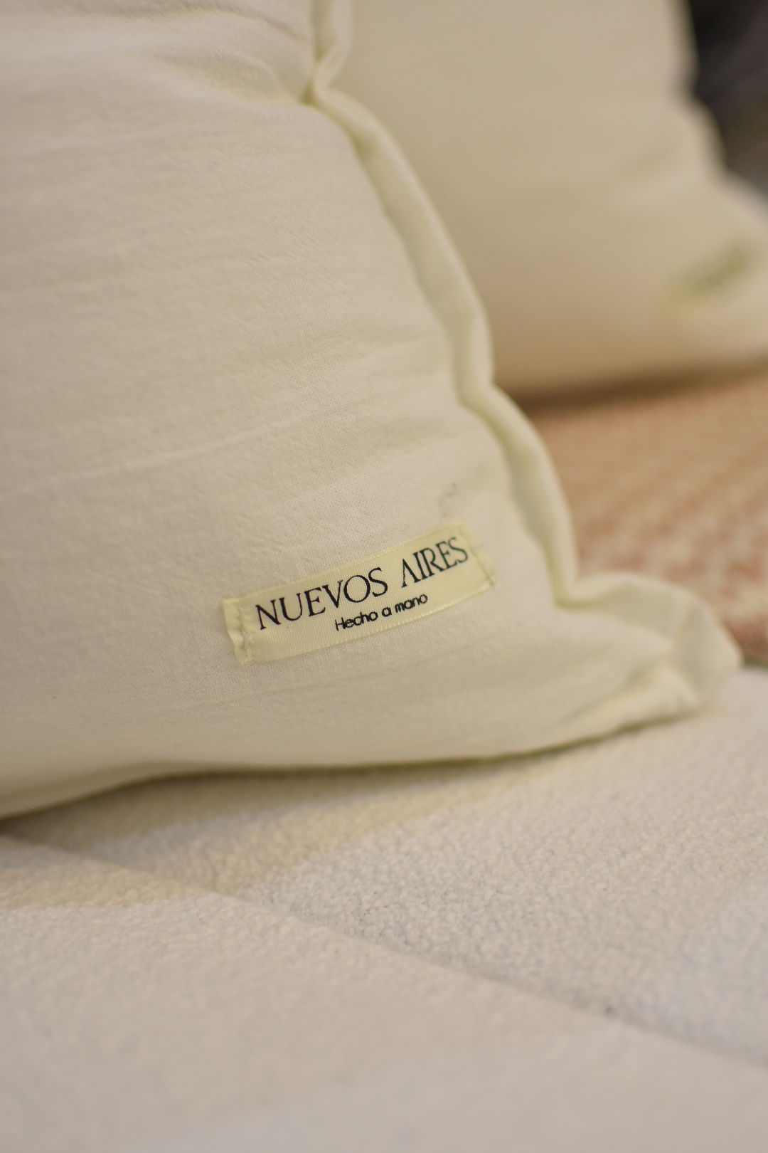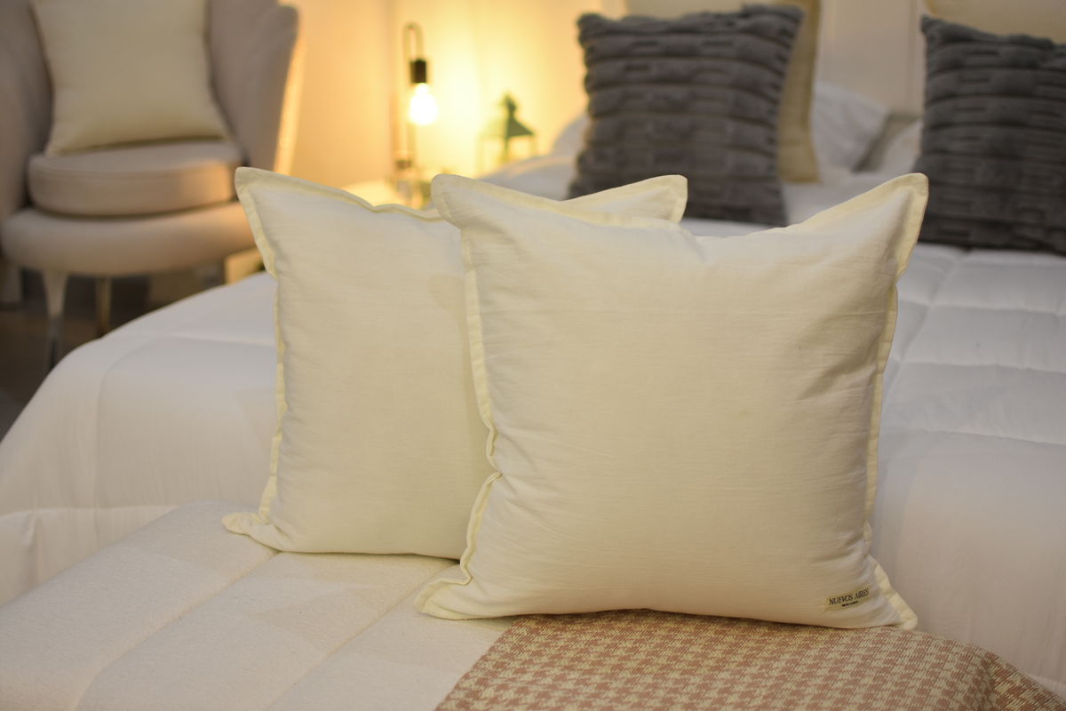 Almohadón confeccionado en Tussor 100% algodón, suave y resistente, ideal para dar un toque cálido y natural a cualquier ambiente.