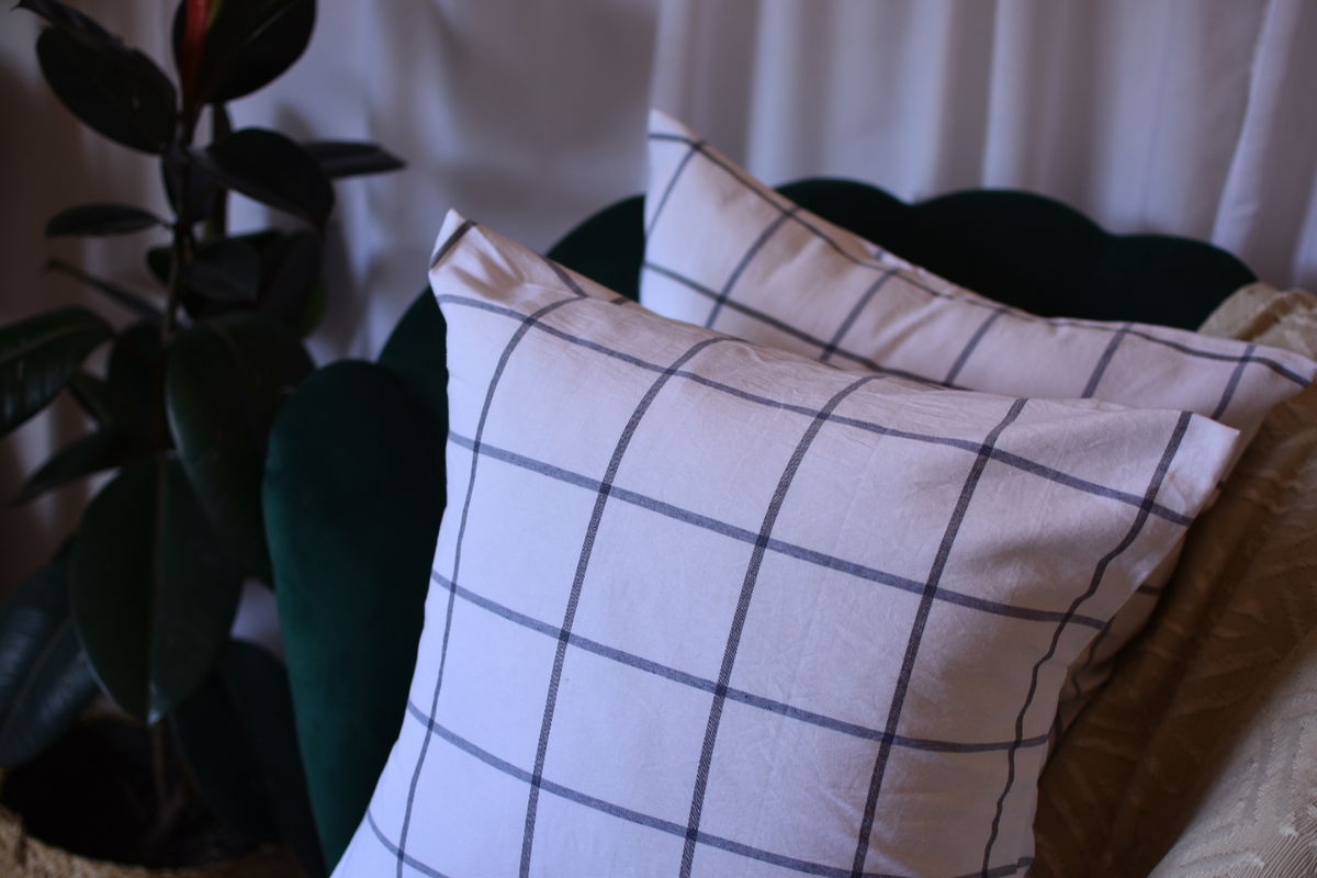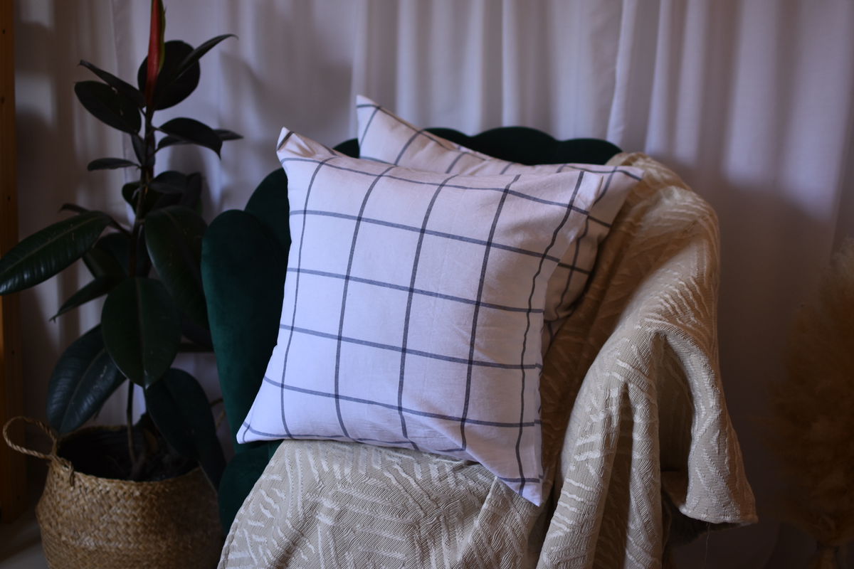 Almohadón confeccionado en Tussor 100% algodón, suave y resistente, ideal para dar un toque cálido y natural a cualquier ambiente.