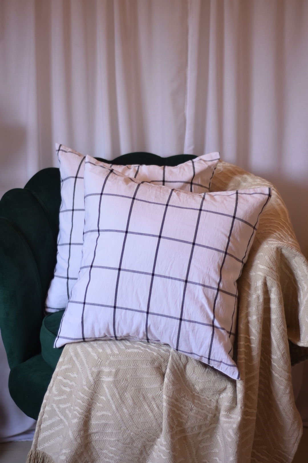 Almohadón confeccionado en Tussor 100% algodón, suave y resistente, ideal para dar un toque cálido y natural a cualquier ambiente.