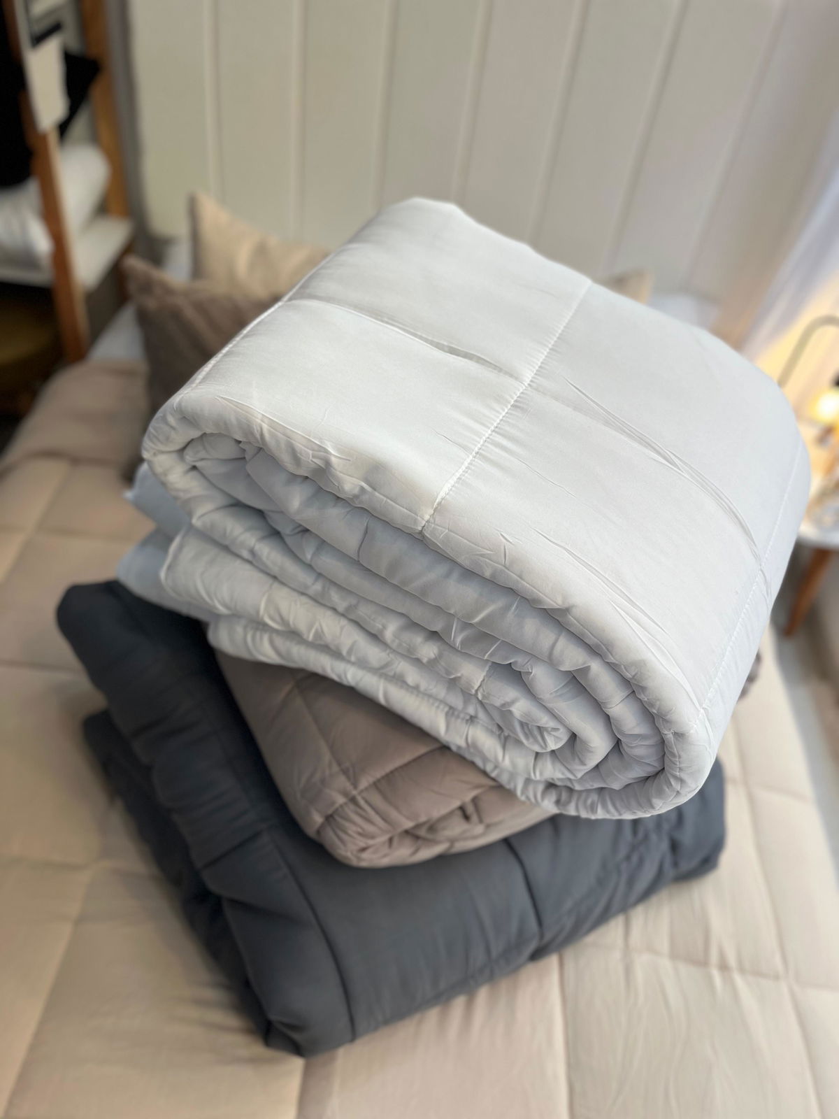 Acolchado reversible en tono blanco, elegante y vers谩til para renovar tu dormitorio con estilo.