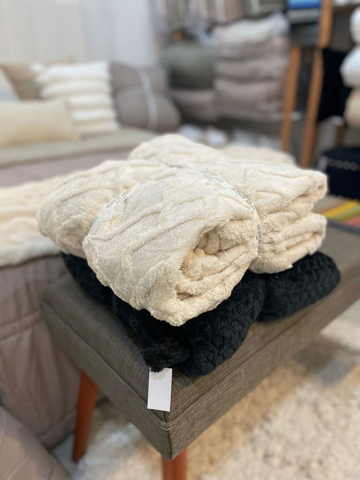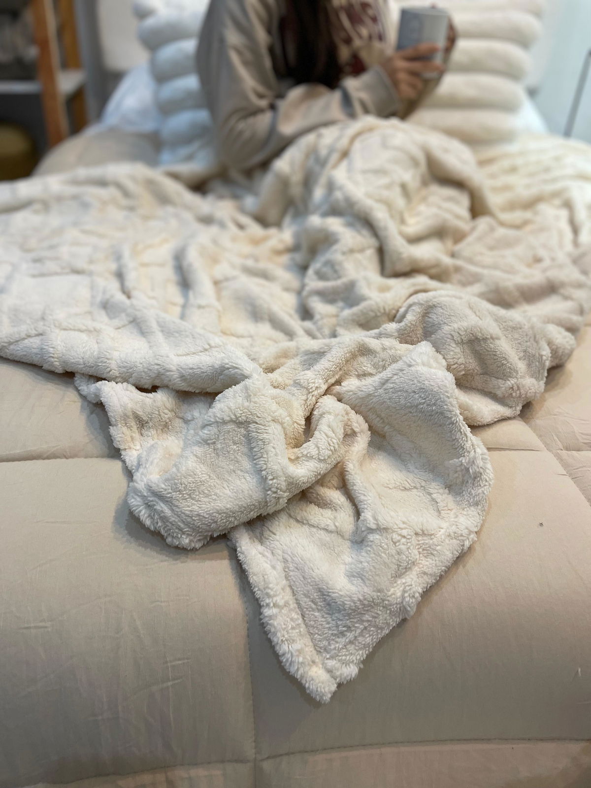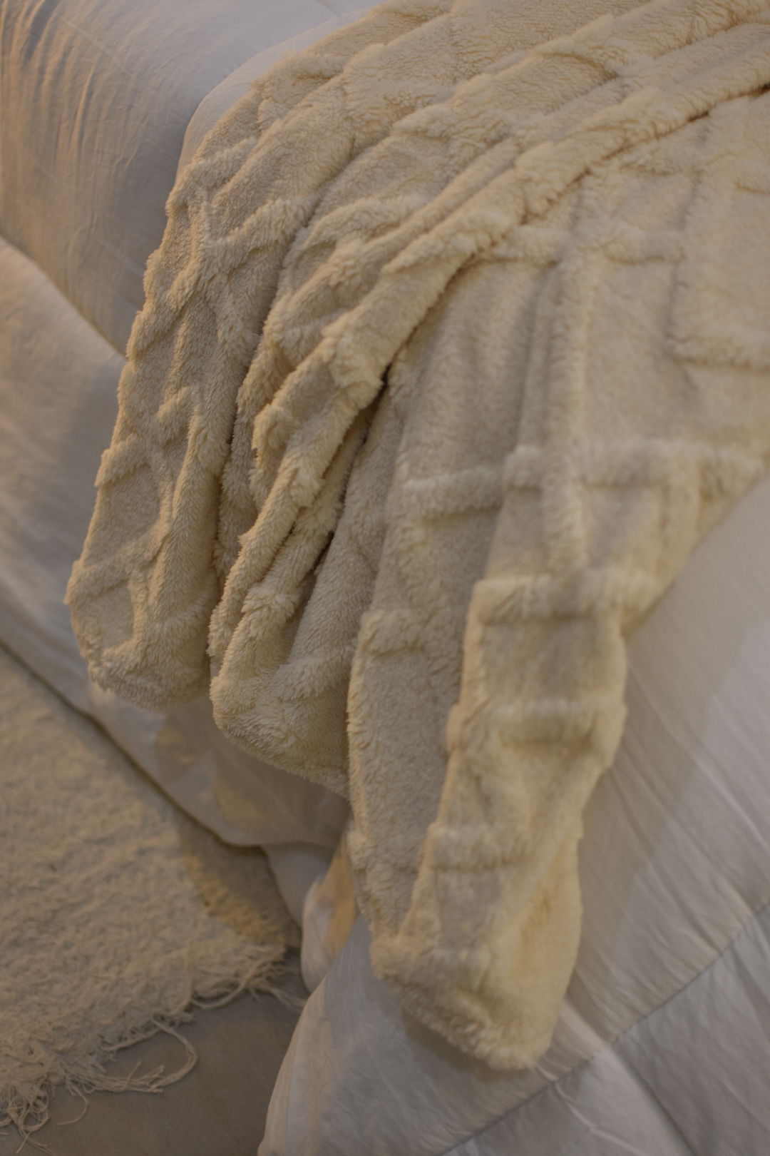 Frazada Flannel rombo natural